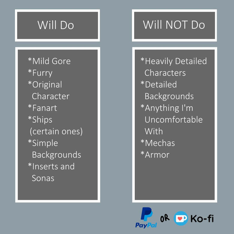 ‼️Send me a DM with:🔸Type of commission🔸Character(s) reference sheet🔸Any reference pictures of the pose(s) you want the character(s) in🔸Any other details you'd like to add‼️Once l've taken your commission:🔸Ask for payment to be sent via Paypal or Ko-Fi🔸I will send you a sketch of your commission so you can confirm that everything looks good and if you'd like me to make any changes🔸I will send you a flat color of your commission so you can confirm that everything looks good and if you'd like me to make any changes🔸Once the commission is ready I will DM you a copy via Instagram or email if you prefer🔸I will ask if I can upload your commission to my socials (Instagram, Twitter and Tumblr)